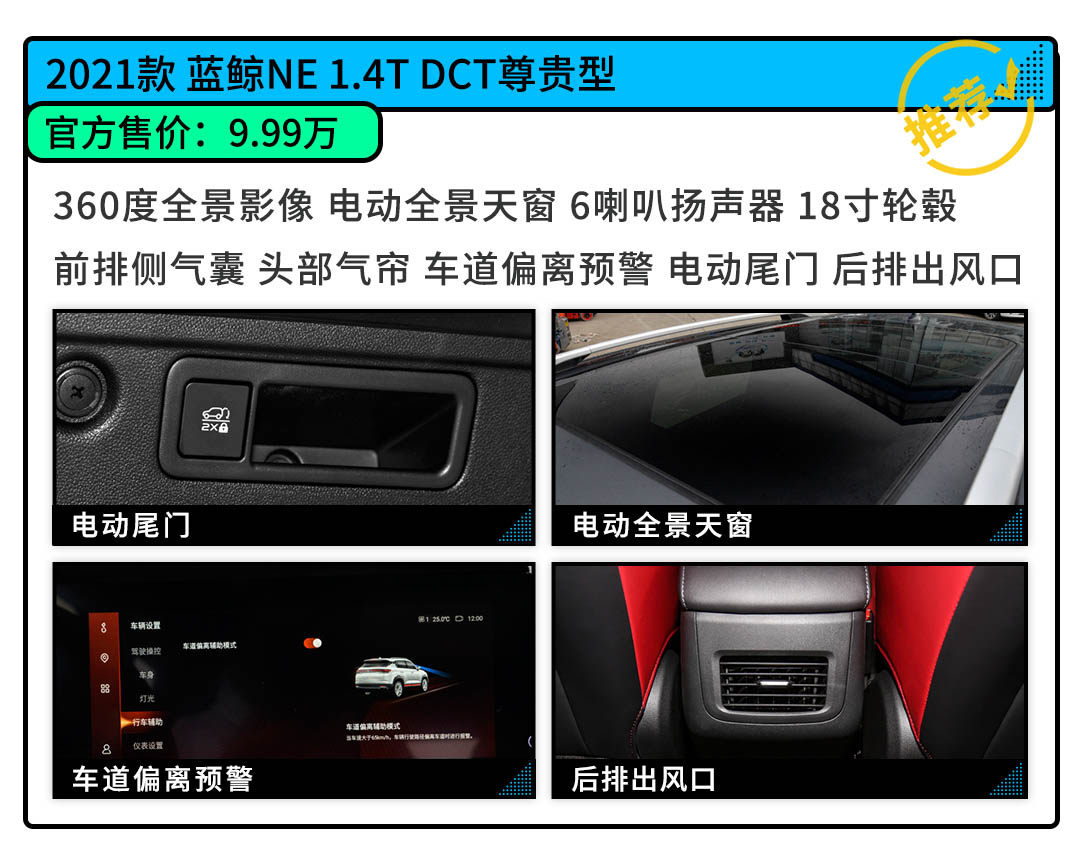 比起9.39万元的入门版车型,作为中配版本的尊贵型在配置方面会更加全面,例如倒车影像升级为360度全景影像、天窗也升级为全景天窗、后排出风口更是得到补全。