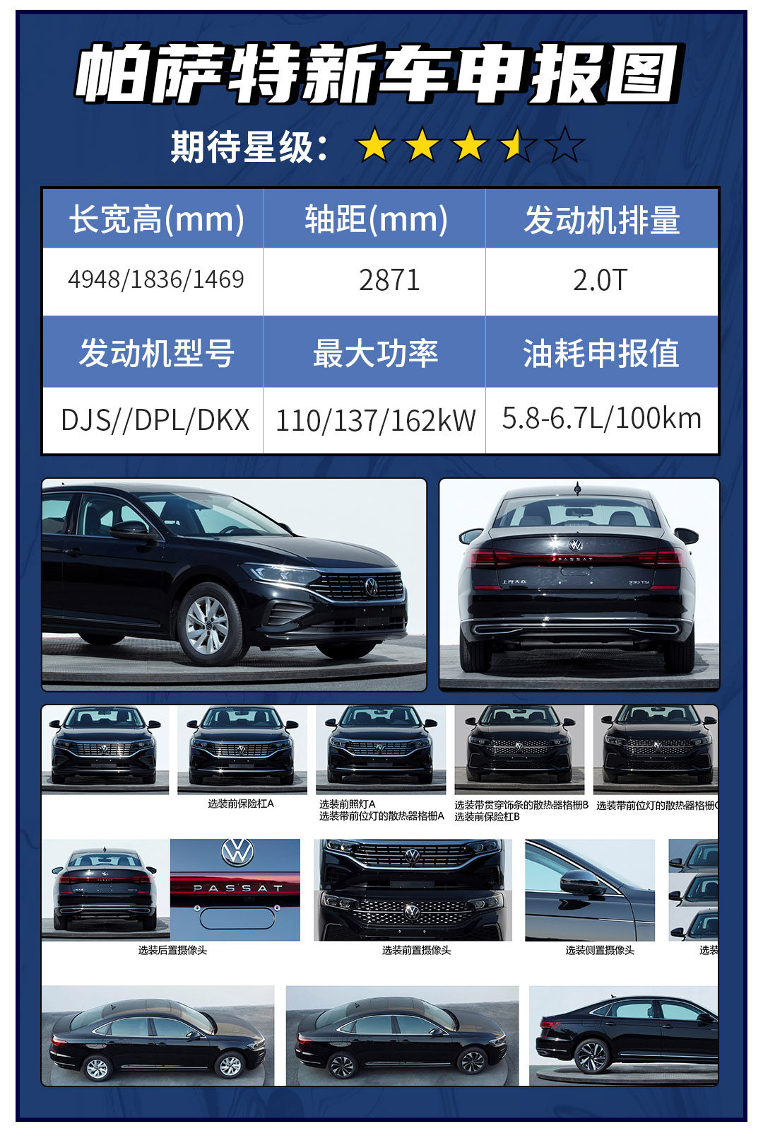 和途观L一样,此前受到一些影响的帕萨特也抓紧时间完成了中期改款。新车的外观变化还是比较明显的,整体变化主要集中在前脸和尾部。前脸大灯灯组造型有细微变化,尾部则是采用了贯穿式尾灯,英文字母还是内嵌在尾灯上。除了燃油版本之外,新车继续推出插电混合动力版本,由1.4T发动机和电机组合而成。据悉,新车有望在4月份举行的上海车展中亮相。