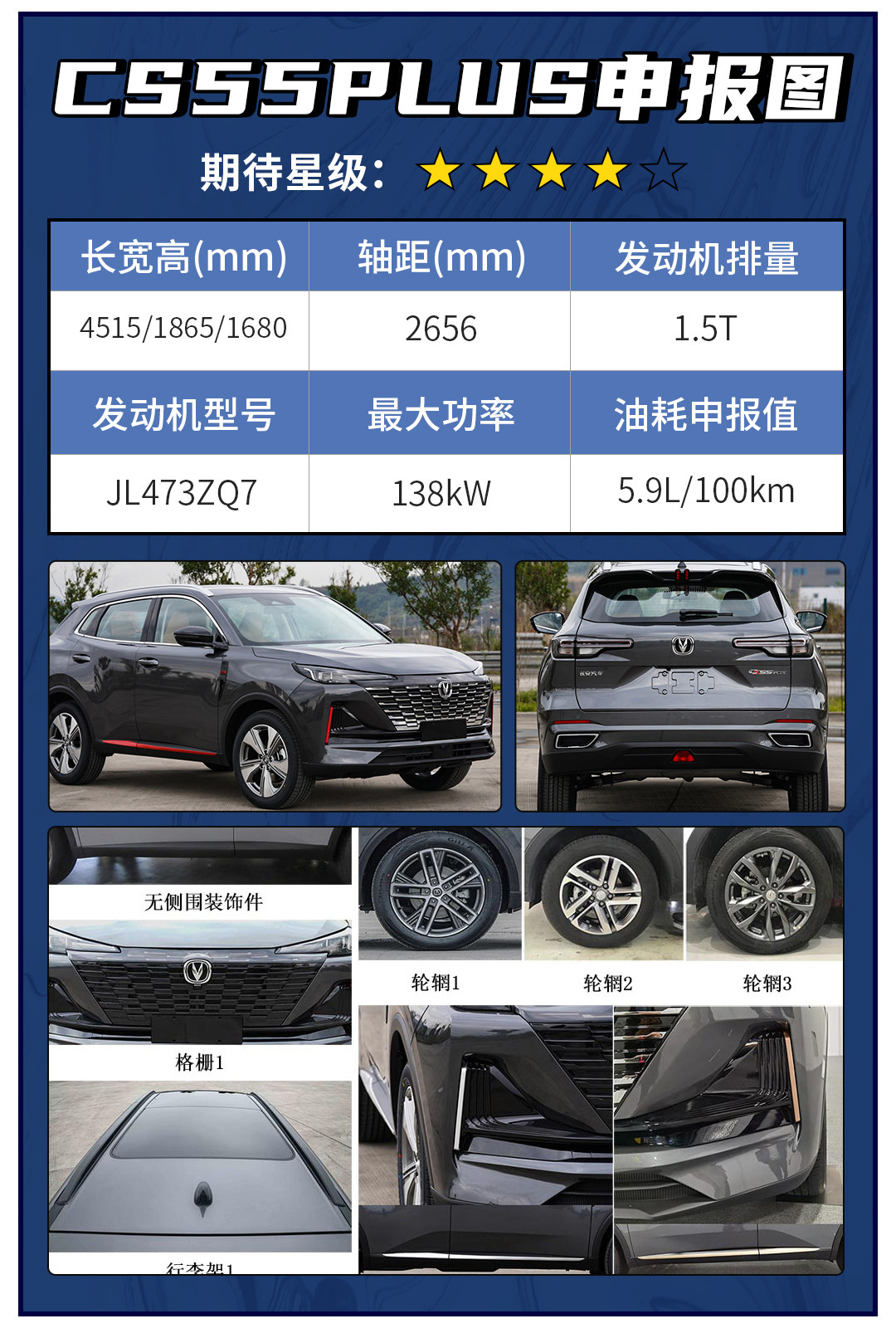 结合官图来看,新车在外观设计变化非常大,整体的变化向UNI-T这款车型靠拢,更加年轻时尚。至于内饰方面,新车还没有其它的消息,不过,根据教授的猜测,该款新车的内饰设计风格或许会和刚刚完成中期改款并上市的长安CS35PLUS相类似,并且在一些功能配置性方面进行优化。动力核心方面,继续搭载最新的蓝鲸1.5T发动机。在高颜值的前提下,CS55PLUS的精致化有了质的飞越,相信未来会有更大的作为!