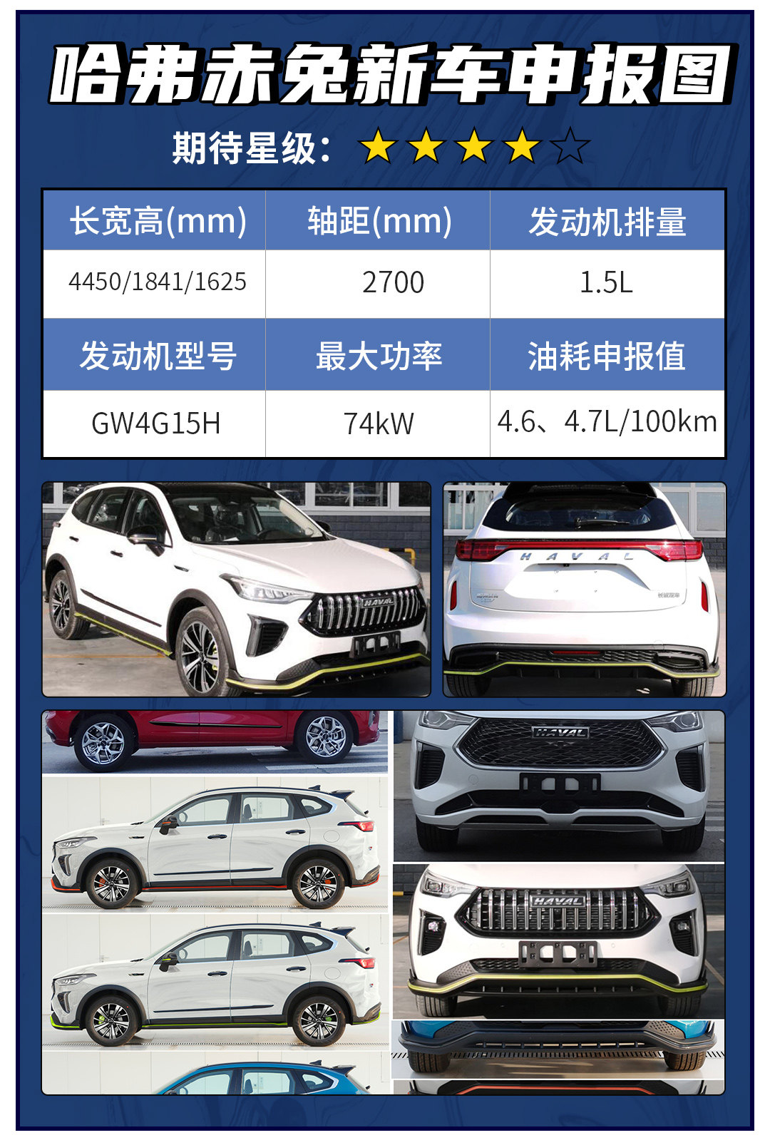 此次哈弗赤兔申报的为混动车型,动力上由型号为GW4G15H的1.5L发动机+电机组合而成的油电混合系统。所以,哈弗赤兔整体的燃油经济性非常出色,最低综合油耗仅为4.6L。值得一提的是,该套油电混合系统出自于长城的柠檬混动DHT技术,除了这套动力组合之外,另外还有1.5T+DHT130、1.5T+DHT130+P4,其中涵盖了HEV和PHEV车型,延展性非常高。