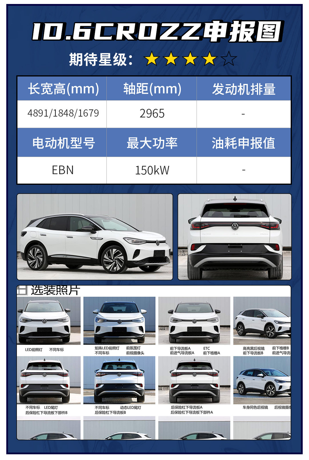 如果说两款大众车型的变化没有特别吸引的话,那么这款大众全新的车型就要关注下了。来自于大众MEB专属平台打造,定位7座SUV,一款纯电SUV的 ID.6 CROZZ。内外设计非常简洁,符合纯电车的身份。至于核心方面,新车电动机最大功率为150kW,而三元锂离子电池组则是来自于宁德时代。目前,大众在新能源领域中已经推出多款车型,基于MEB专属平台的它们在以后将会扮演着一个非常重要的角色!