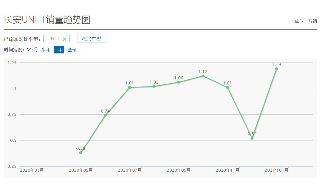 而从市场的角度来看,长安UNI-T上市后的市场表现还算不错,即便是0优惠的状态下月销量也基本维持在1万辆以上,证明市场和消费者对于UNI-T这款产品是比较认可的。