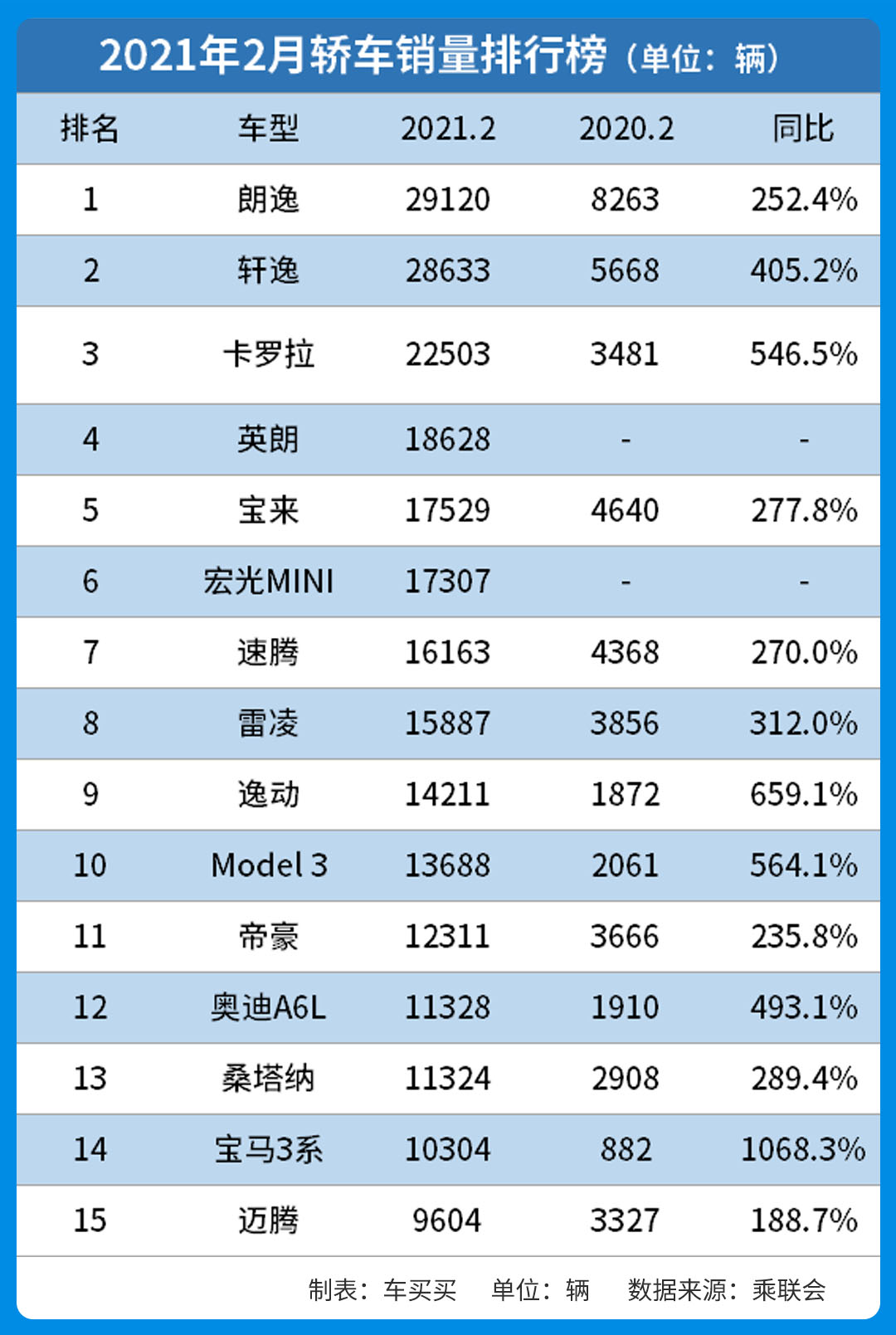 不过奇怪的是,二连三的事故,似乎并没有影响到人们的买车热情。2月份Model 3的销量为13,688辆,较去年同期增长564.1%,排名挤进前十。