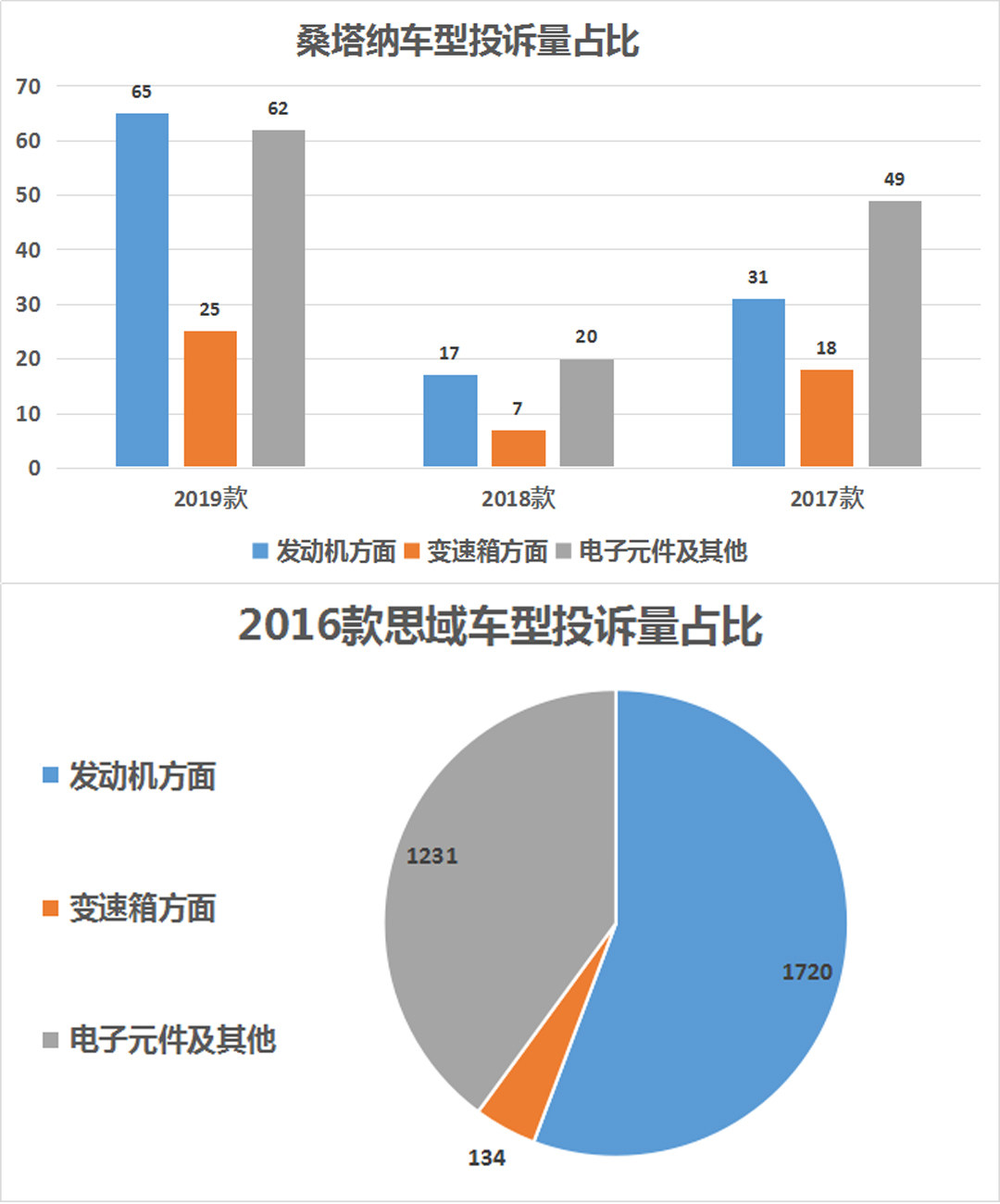 桑塔纳的稳定性到底有多强?以同样是常年月销量2万级的思域做对比。对比发现尽管桑塔纳车型每年都进行小改款,但历年来的投诉率并不高。2017-2019款车型的总投诉率为294件,以其中相对较高的2019款为例,发动机方面多以异响为投诉原因。而号称是买发动机送车的本田,旗下思域2016款车型总投诉率高达3085件,其中发动机方面投诉占比达到56.2%,且部分用户反馈出现机油增多、机油乳化等现象。