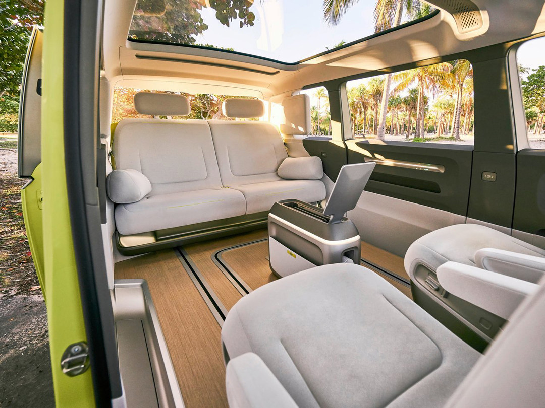 内饰风格用两个字可以形容:极简。相比起ID.4和ID.3,ID.BUZZ明显更具科幻感,车厢内部所有的功能均被机场在中央触控面板中,甚至连传统驾驶员仪表也被取消,目前ID.4上的AR-HUD功能估计会被搭载在ID.BUZZ上。