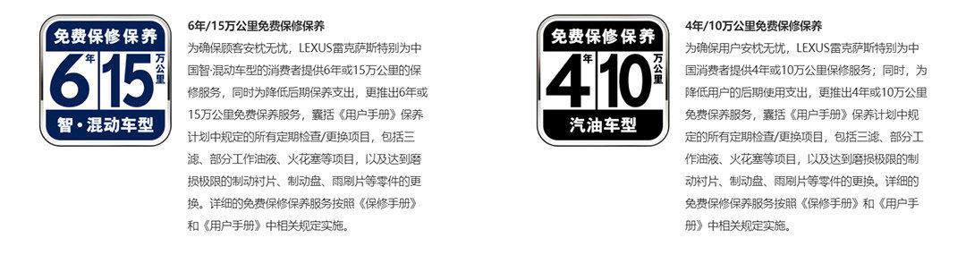 当然雷克萨斯还有很重要的一点是提供了燃油版4年、混动版6年的免费基础保养支持,加上进口的品质以及混合动力系统的加持,雷克萨斯UX绝对能算是同级别中能买到可靠耐用性最强且养车成本最低的豪华车型。