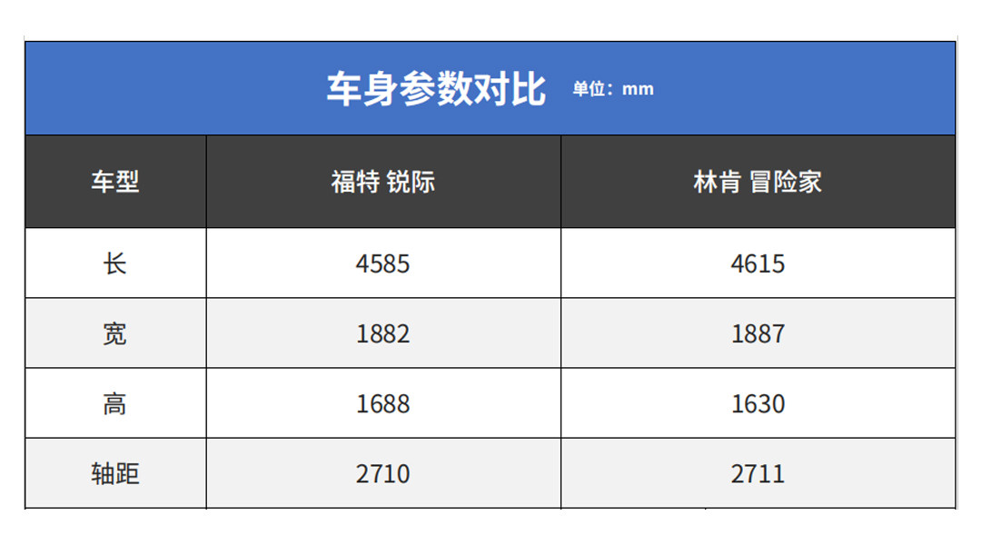 林肯作为福特的高端品牌,两家品牌自然也会存在同平台下的产物,冒险家与锐际,便都是基于C2平台产销的兄弟车型。从动力方面来说,两车均匹配了2.0T+8AT的动力总成,且轴距也维持在相同水准(锐际轴距为2710mm,冒险家为2711mm)。