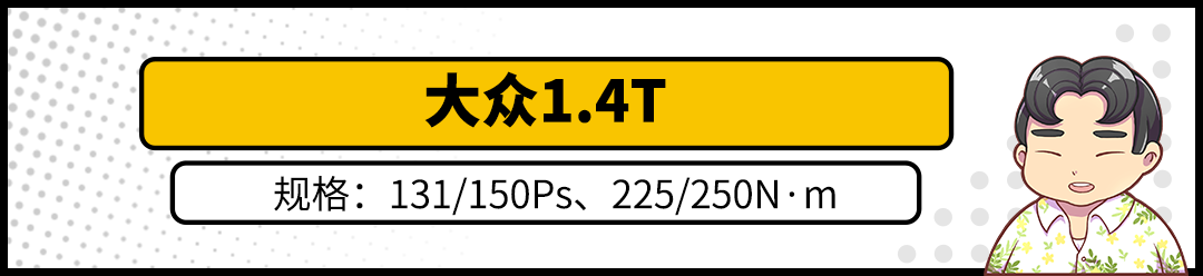 目前搭载1.4T(EA211)发动机的车系几乎都是高功率版本,最大马力150Ps,峰值扭矩250N·m,这样的动力表现算是中规中矩吧,不算太凸出也不算太中庸,重点是配上DSG双离合传动效率大大的提高。正是这样的特性,可适配它的车型覆盖面极其广泛,上至中型车、SUV下至紧凑型级车。