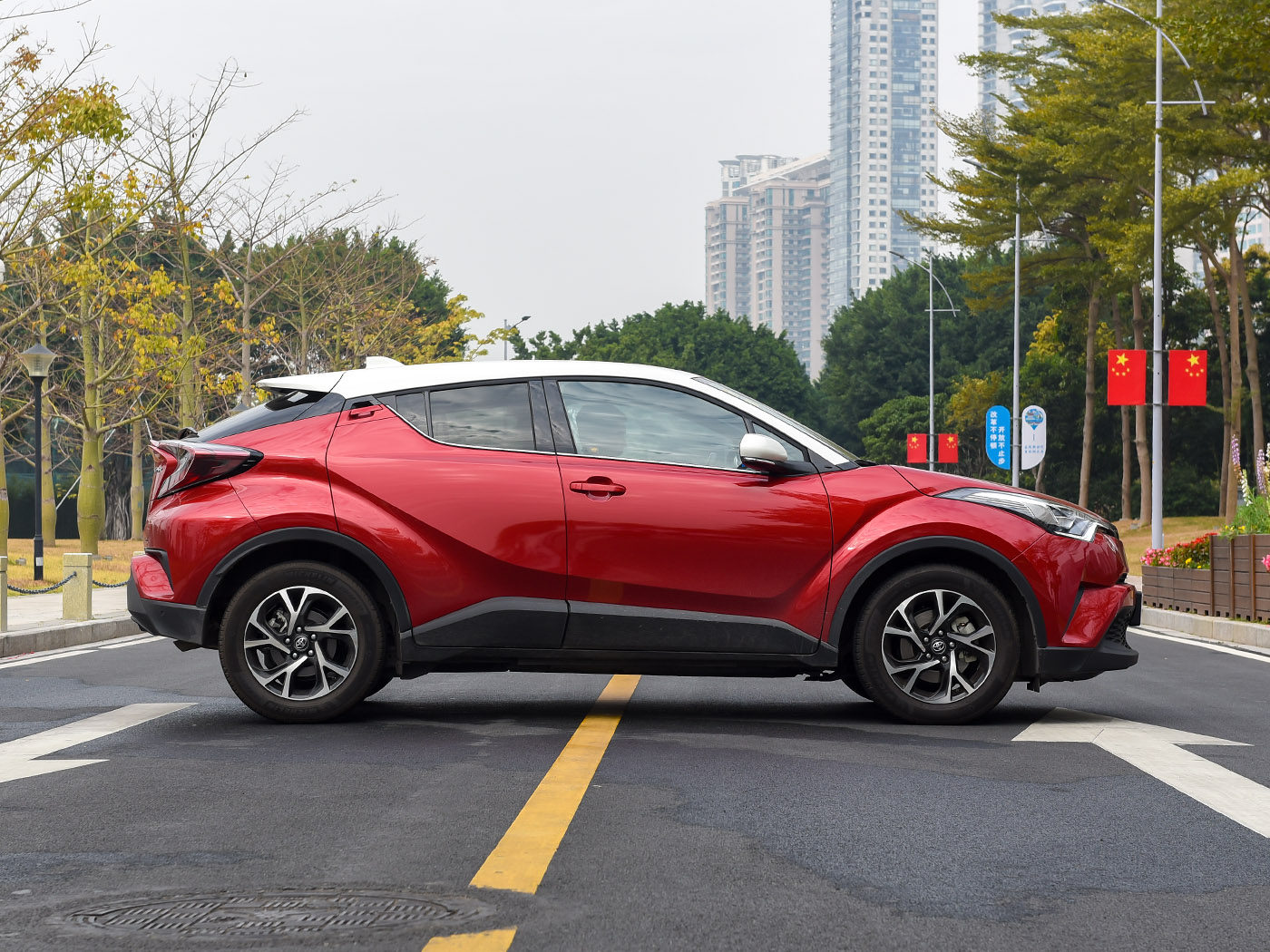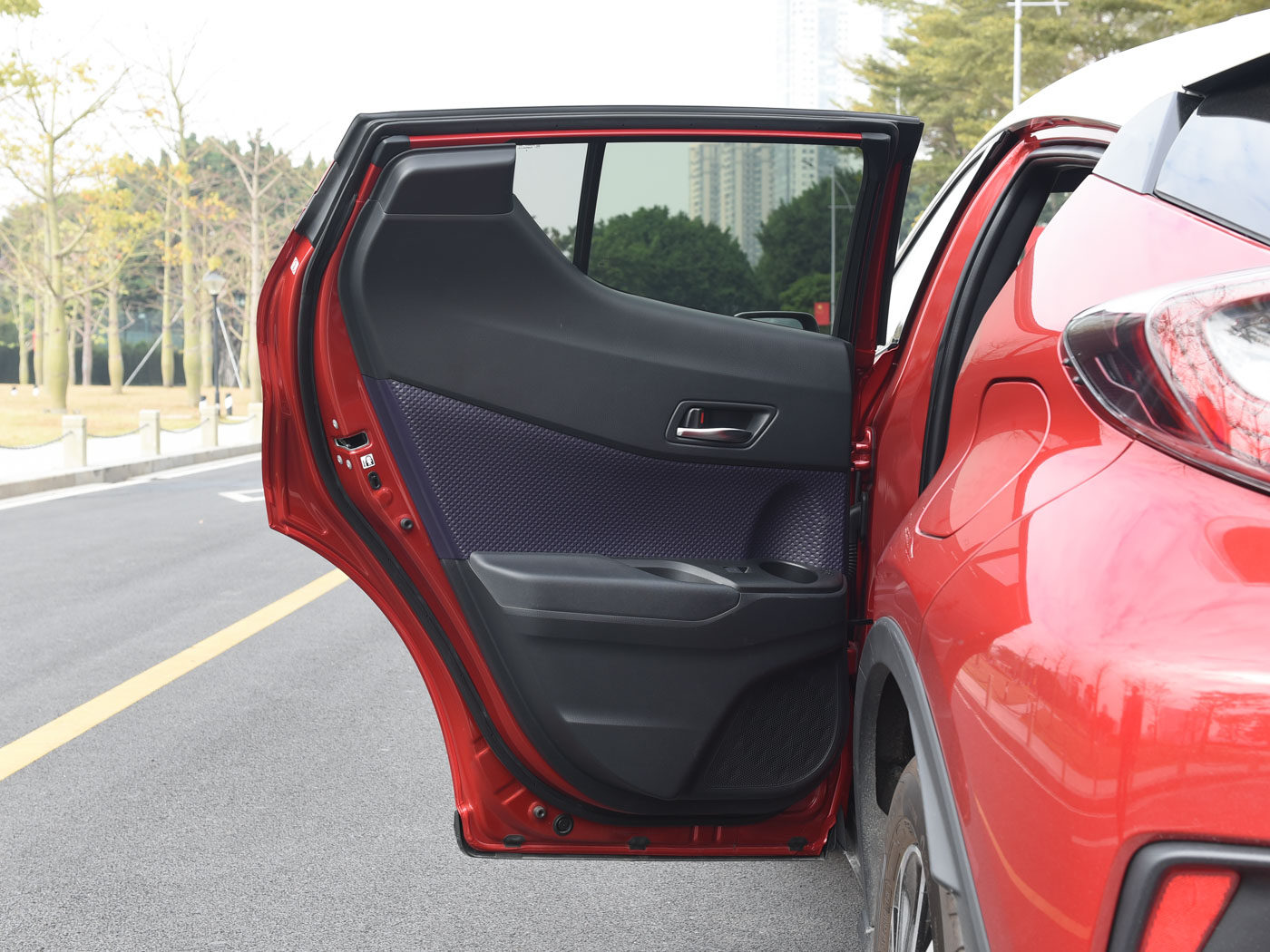 从车身侧面看,C-HR的前门占据了较大比例,但这并不代表C-HR的后排空间水准就一定不行。经过实测,车辆后排580~840mm的腿部空间(本田XR-V为670~870mm)在小型SUV中算是较为亮眼的表现,加上前排座椅后方的偷空设计也为第二排的乘坐体验带来一定加分。同时车辆配置起步自带10安全气囊,而自适应巡航、主动刹车在内的各项安全配置也近乎做到了全系标配。