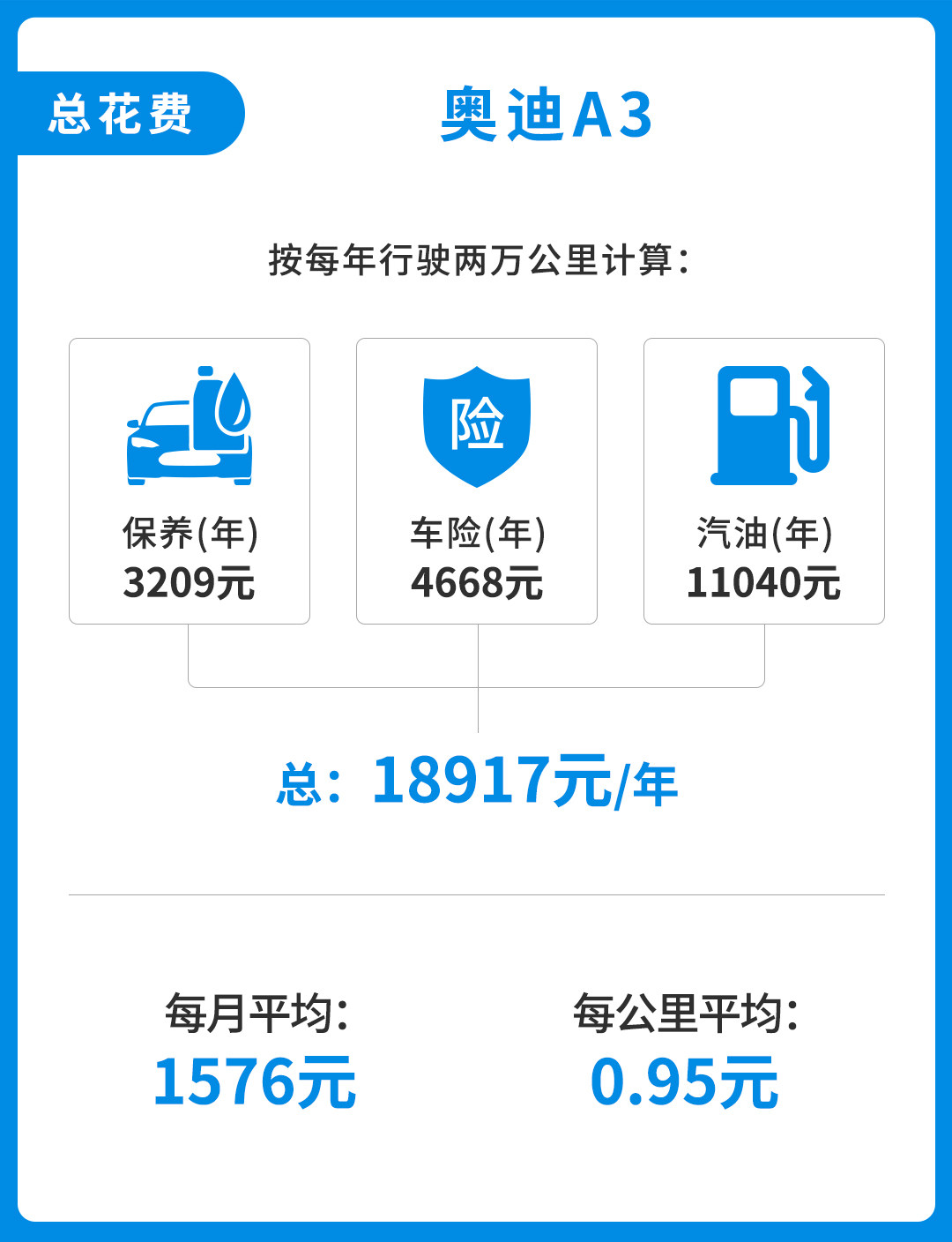 奥迪作为国内乃至全球一线的豪华品牌,其品牌影响力自然不需要过多赘述,但奥迪A3作为旗下最入门级的豪车,除了品牌方面外,在养护上也体现出了豪车的极致享受。在奥迪的保养方面,仅更换机油和机滤的小保养工时费就高达600元,普通小保养就需花费1124元。一年下来的养车开销高达18917元,如果再加上贷款方面的压力,奥迪A3的养护着实不轻松。