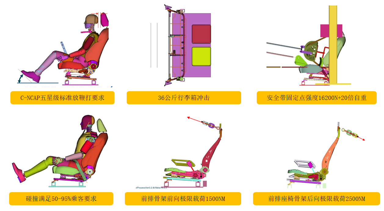 50-95%乘客即碰撞中假人身材标准,一般前排座椅骨架前向极限载荷为1200 N·m,向后为2000 N·m即为良好标准,明显MG5的表现更加令人满意。
