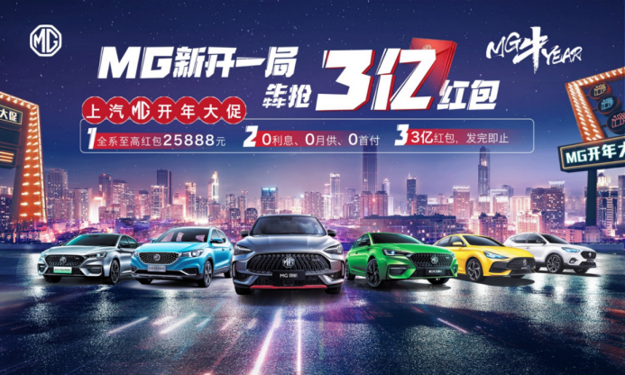 开年以来,MG实现持续热销,1-2月MG销售汽车超6万台,继续位列中国出口单一汽车品牌销量第一,且订单和咨询量仍在不断攀升。顺势而为,MG在3月19日-4月18日期间,隆重推出红包购车优惠政策:3亿元购车现金红包全民共抢,全系红包至高可达25888元,用户购车即可享受0利息0月供0首付金融福利。红包多多,抢完即止!有意在春季买车的朋友,切莫错过这个畅销全球66个国家和地区的汽车潮牌,并前往当地MG 4S店咨询工作人员,领取你的专属福利!
