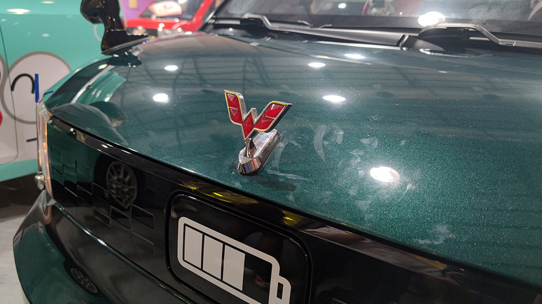 说实话,与场内的其他对手相比,这台车算是比较“素”的,但为何又能体现“高级感”,我觉得最大的功臣莫过于车漆,该车配备了英伦绿的车身配色,整体看上去颇有英国皇家的味道,加上“五菱立标”以及机盖上后视镜,你品,你细品!