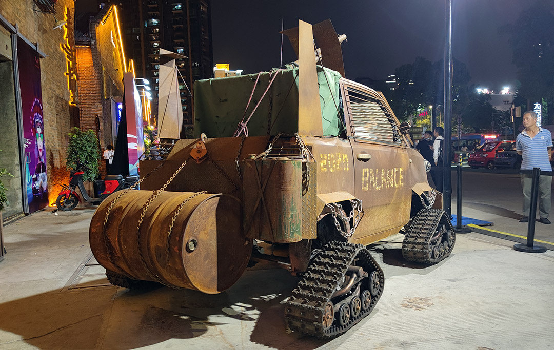 不知道设计者是丧尸片看多了,还是“求生之路”玩多了,其整体的设计风格估计是参照了上述的两者。“破烂版”的五菱宏光MINI EV集成了攻击、防御两种属性,用来对付一众丧尸,简直无敌。但显然,现实并没有丧尸,它的作用,可能也只能在晚上吓吓人罢了。
