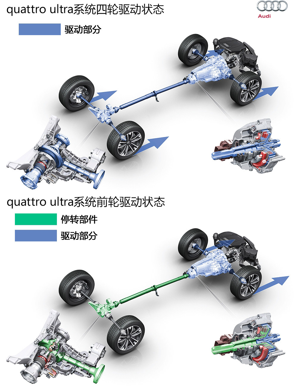 奥迪的quattro四轮驱动系统也算是业内小有名气的一套四驱系统,奥迪是第一个把四驱系统应用在轿车上的品牌,同时也是凭借着这套四驱系统令奥迪在WRC赛事上名声大噪。而随着几十年的发展,奥迪的quattro系统也逐渐在进步。