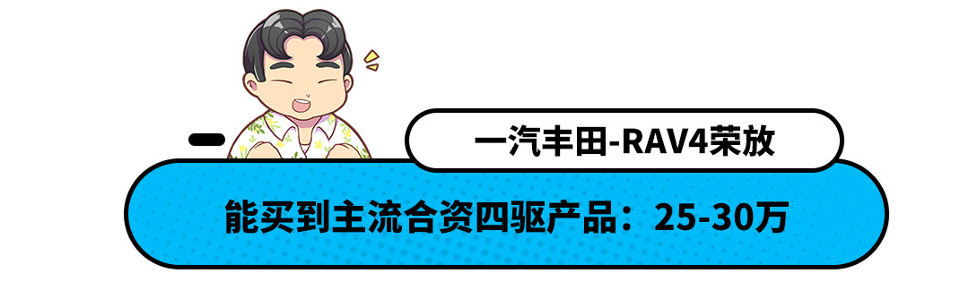 这个售价区间是大部分紧凑型SUV的主战场、丰田RAV4荣放、大众途岳、日产奇骏等众多车型基本都处在这一区间内。虽然其中城市SUV居多,但也不乏有以四驱系统为卖点的产品。