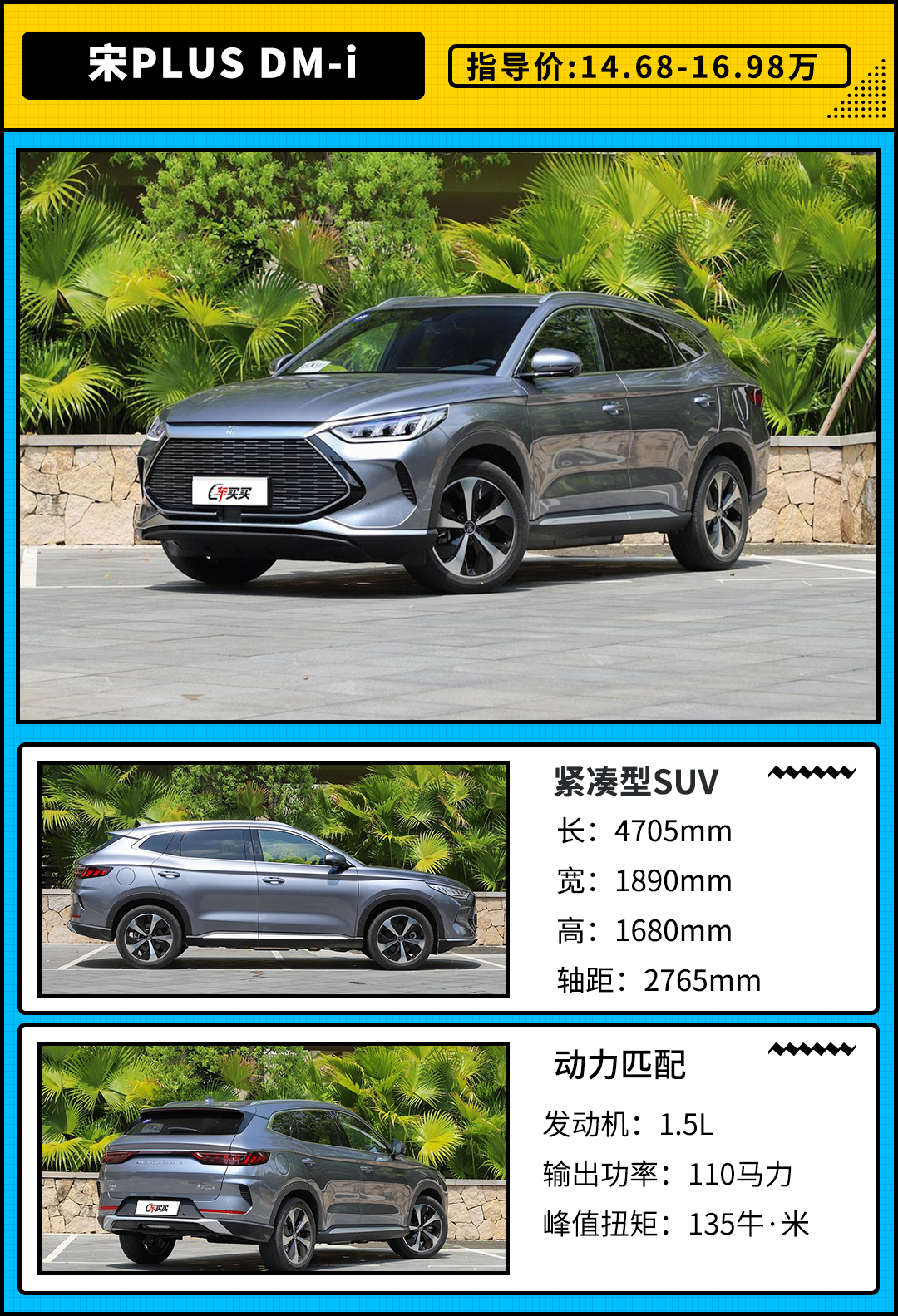 前有比亚迪秦PLUS DM-i,后有比亚迪宋PLUS DM-i,意味着比亚迪的DM-i超级混动平台涵盖了轿车与SUV领域。其中的比亚迪宋PLUS DM-i也迎来了上市,补贴后售价在14.68-16.98万。