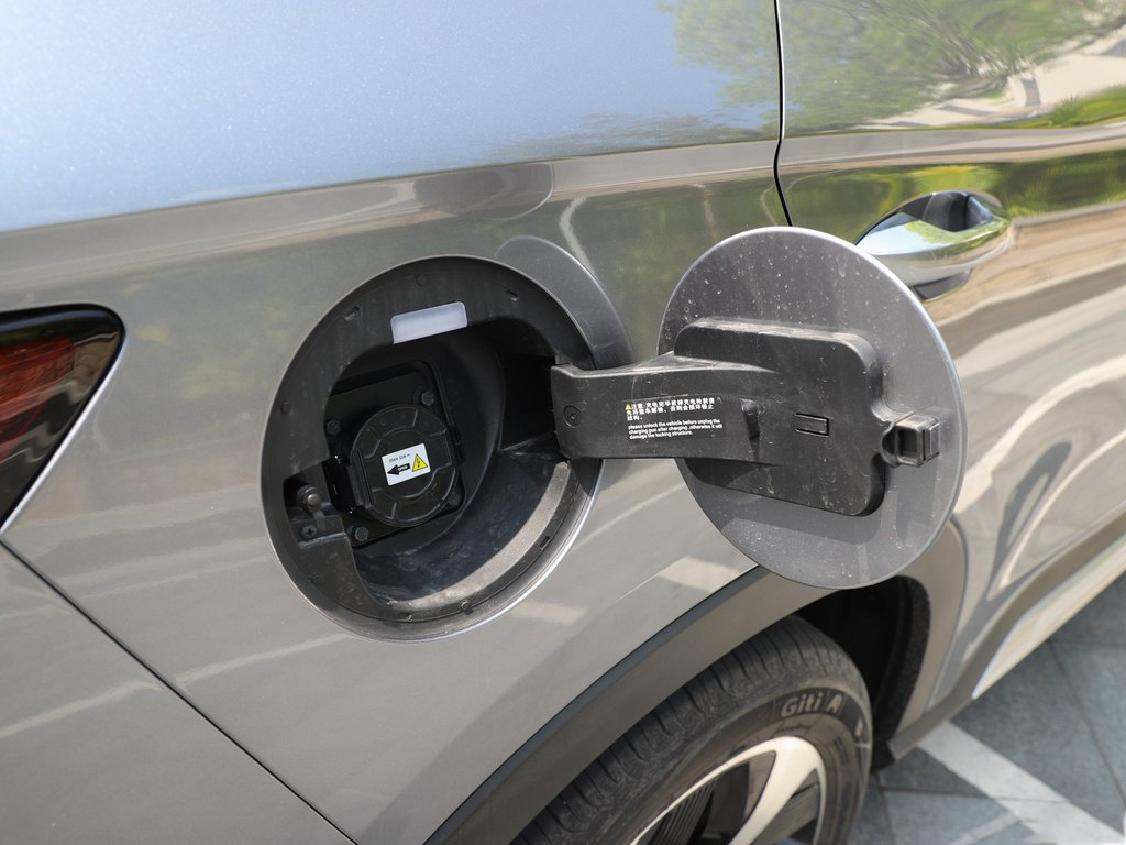 相比大部分的插混车型由于电池机构的布局,把充电头设置在了前翼子板处。这对于停车习惯倒车入库的国内消费者而言并不友好,但宋PLUS DM-i把充电孔设置在后翼子板处,驾驶员停好车下车便可轻松充电,细节的处理值得好评!