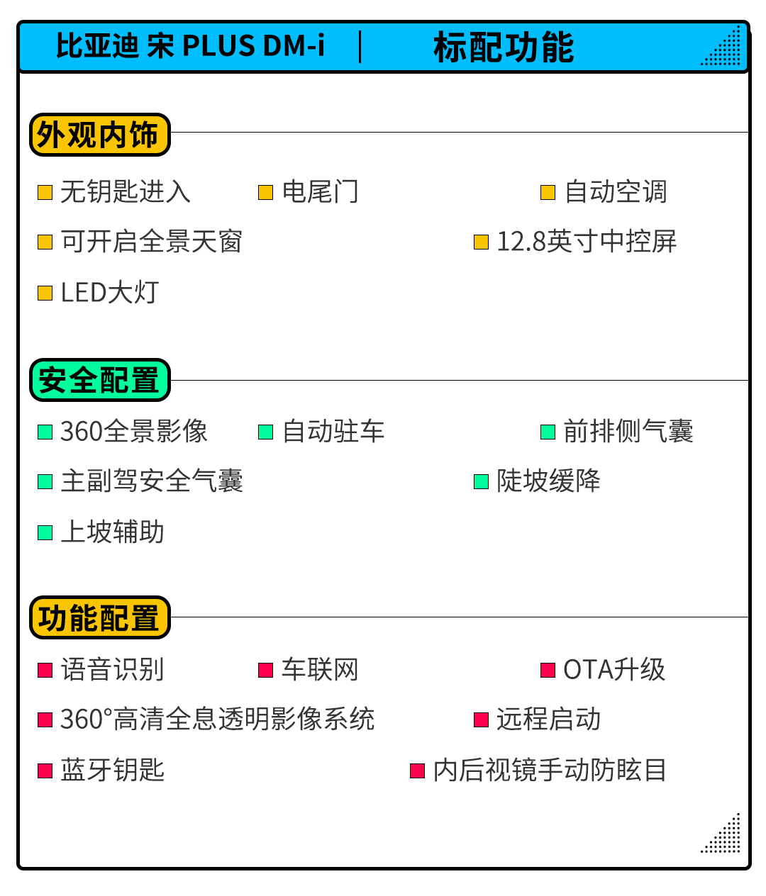 解析至此,依照惯例买买君还想为大家推荐一波导购建议。倘若手拿十五万左右的购车预算,对于宋PLUS DM-i不同的车型版本配置该如何取舍。