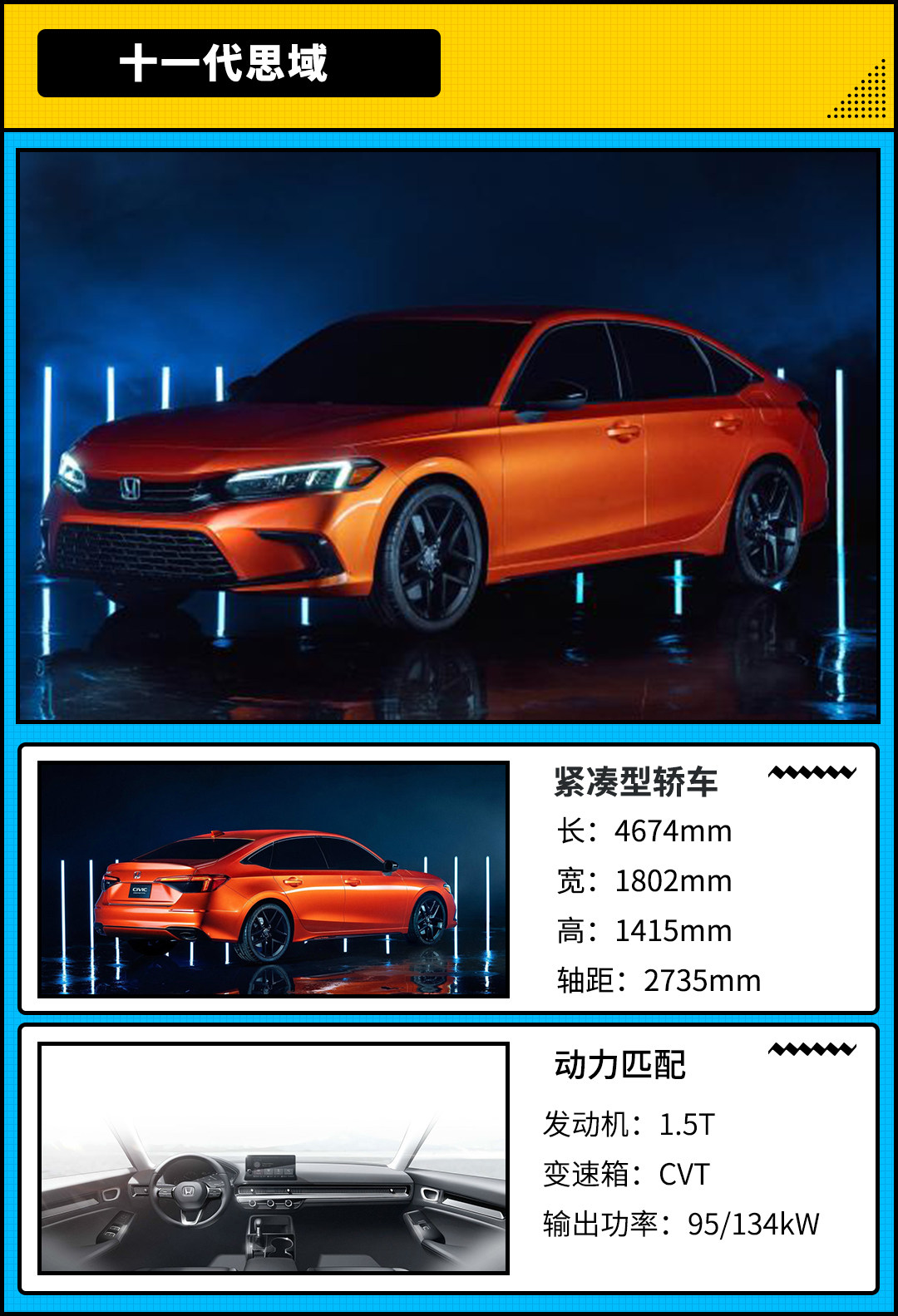 关于十一代思域换代造型的特点来看,暂且不论十一代思域在颜值部分的孰好孰坏,毕竟审美这方面无非就是个萝卜白菜各有所爱的问题。但全新思域更加注重空间的实用性,除了车身尺寸增加,想必十一代思域取消中看不中用的溜背设计从而采用常规的三厢设计此举来看,十一代思域在驾乘空间部分的确是变得更家用了些。