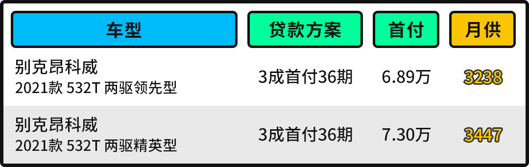 而价格方面优势就更明显,目前昂科威普遍有3.5万元的优惠力度,最低配车型优惠完裸车价为15.49万元,购置税13,708元,商业保险加交强险7700,上牌费500,全款落地价在17.7万元左右。如果手里不是特别宽裕,也可分期购车,以首付30%分36期来算,首付金额 6.89万元,月供3238元,供大家参考,具体以请你们当地优惠为准。
