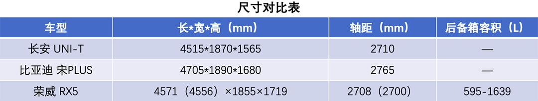 荣威RX5车型,不仅是三款车型中,高度最高的。同时,该车的后排也配有靠背角度可调功能,让乘坐者能更方便找到适合的坐姿,避免长时间乘坐的疲劳。而长安UNI-T,虽然在尺寸上不如另外两款车型,但是设计师还是尽量把空间留给车内乘客,让长安UNI-T的车内空间感与另外两款车型区别不大。另外,长安UNI-T后排座椅的包裹性应该是三款车型中最好的,而且座椅填充物较为柔软,让后排乘客能拥有更为放松的坐姿。