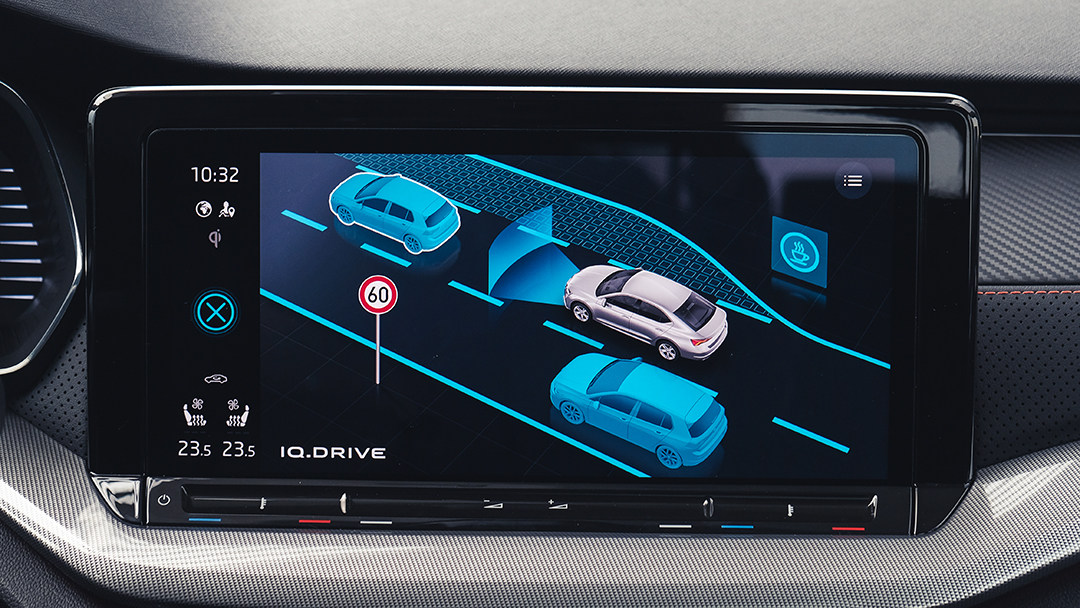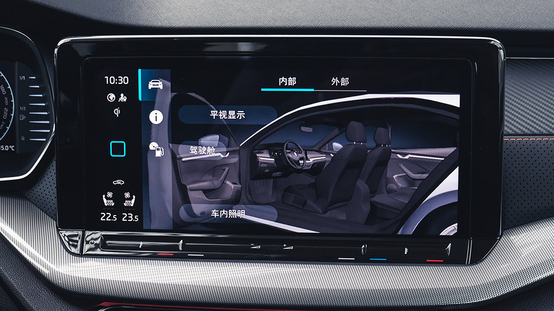 全新的斯柯达智慧车联系统是本土化产物,拥有语音识别控制、在线娱乐、手机映射等智能应用。但由于此次试驾的车型并非市售商品车,教授暂未能完全体验可在线寻车、远程控车的斯柯达APP、智趣出行乃至与小京鱼IoT平台合作开发的智能家居互联等应用。