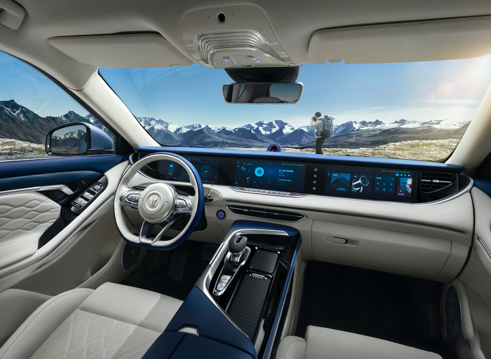 配置部分,新车搭载了华为5G芯片,配备L2级别辅助驾驶系统、四区语音识别功能、AR导航系统、10扬声器丹拿音响系统、十级透明度可调的智能全景天幕和香氛系统等,并支持人脸识别、声纹识别、哨兵模式和整车OTA升级。