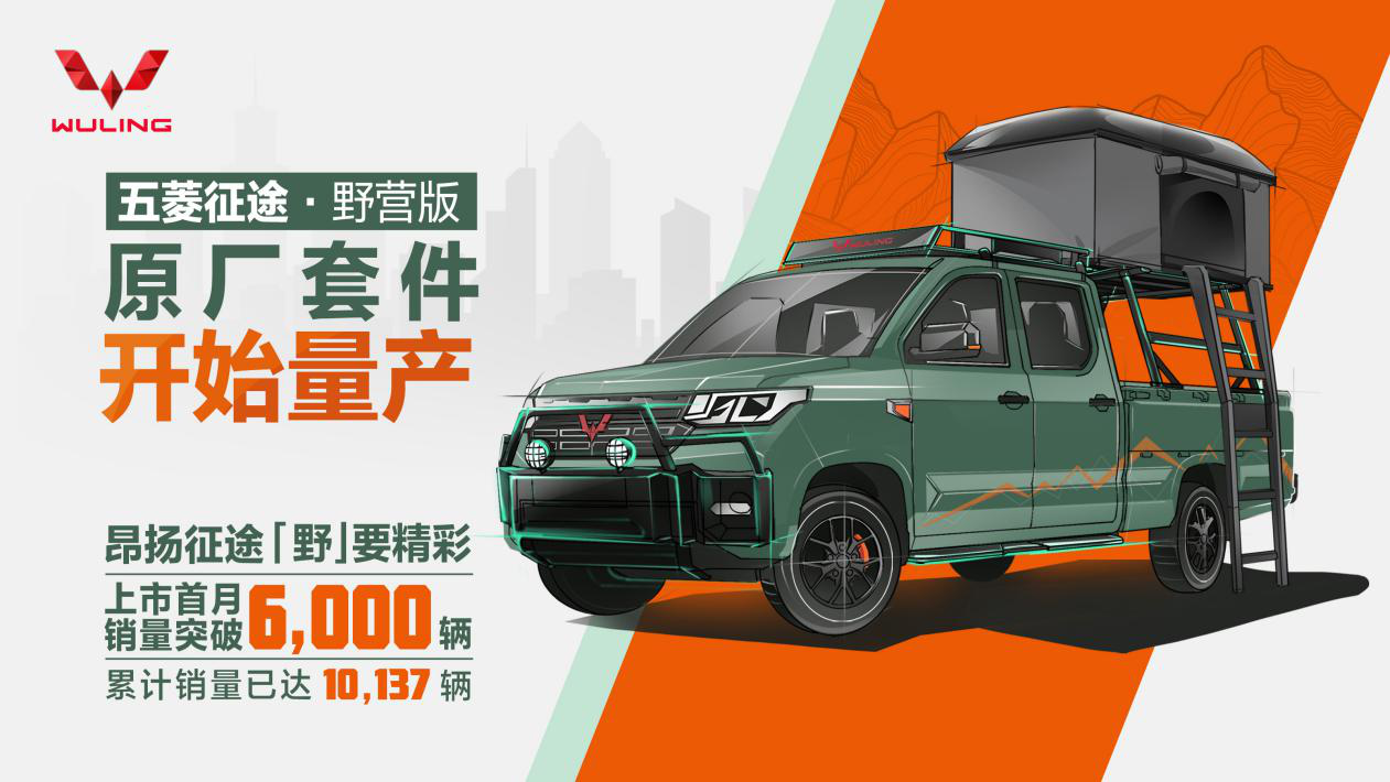 【2021年4月1日】今日,上汽通用五菱宣布首款青春型皮卡——五菱征途上市首月销量突破6000台,累计销量已达10137台,勇夺“开门红”!为回应用户期待,即将推出野营版原厂套件。从公布的草图可看到,野营版车型“装备升级”,丰富的功能可满足用户更多样的用车需求,带来青春用车新体验。