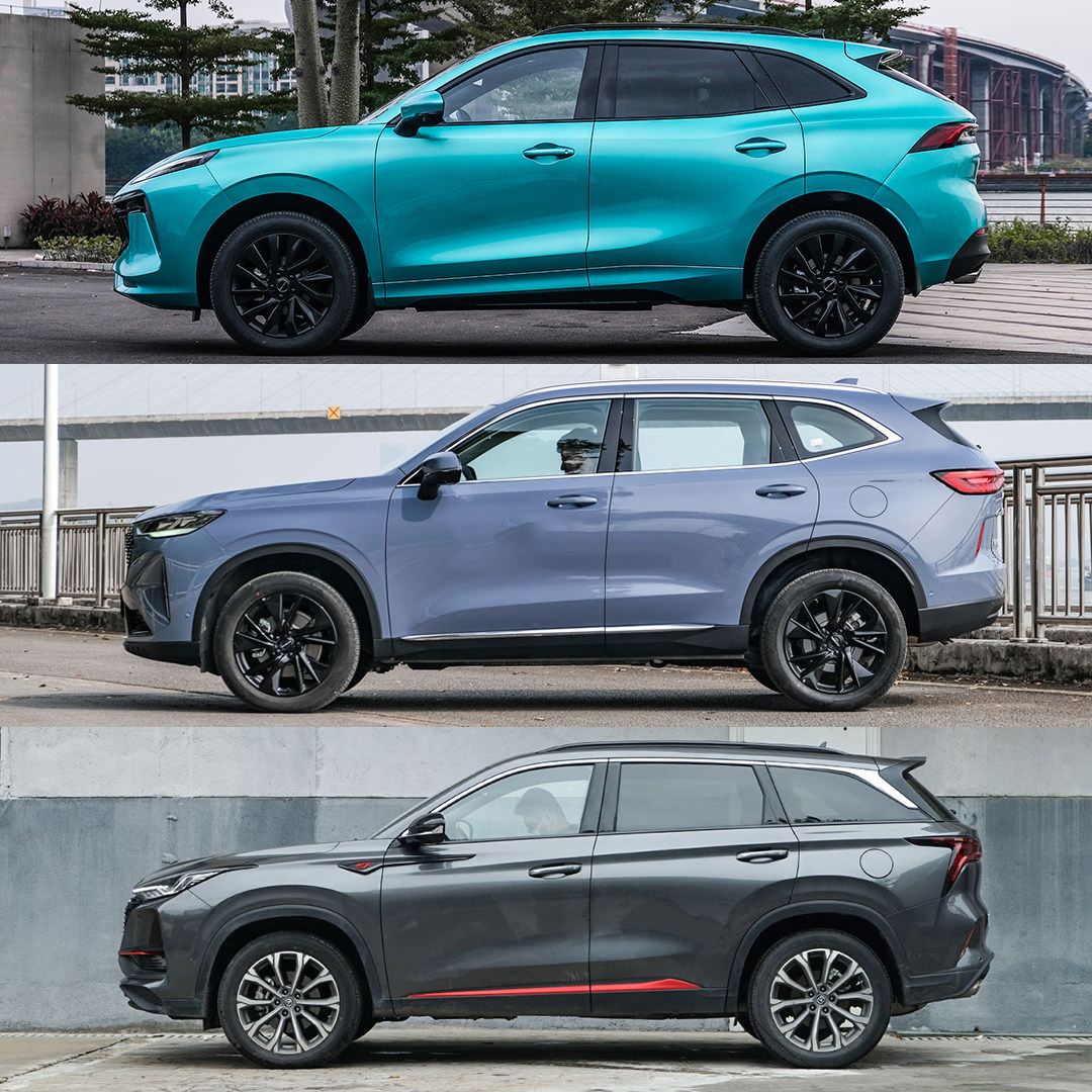 三款车型代表了三种不同类型的设计风格和形象,哈弗H6和CS75 PLUS都是大家印象中比较敦实,大气的家用SUV,能给人满满的安全感,只是CS75 PLUS多了一份运动感;而风行T5 EVO则是最符合这两年掀起的运动风潮的车型,非常前卫和激进。