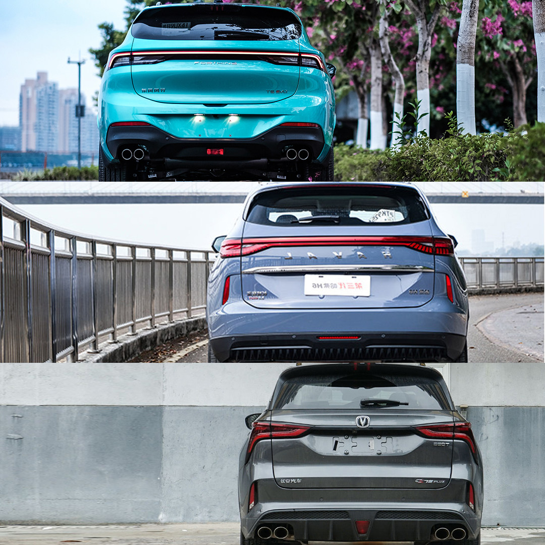 另外值得一说的是三款车的车色选择,CS75 PLUS主打单调色系,黑色、灰色较为契合运动感;相比之下风行T5 EVO和H6的色系更丰富,H6红蓝青都很好看;