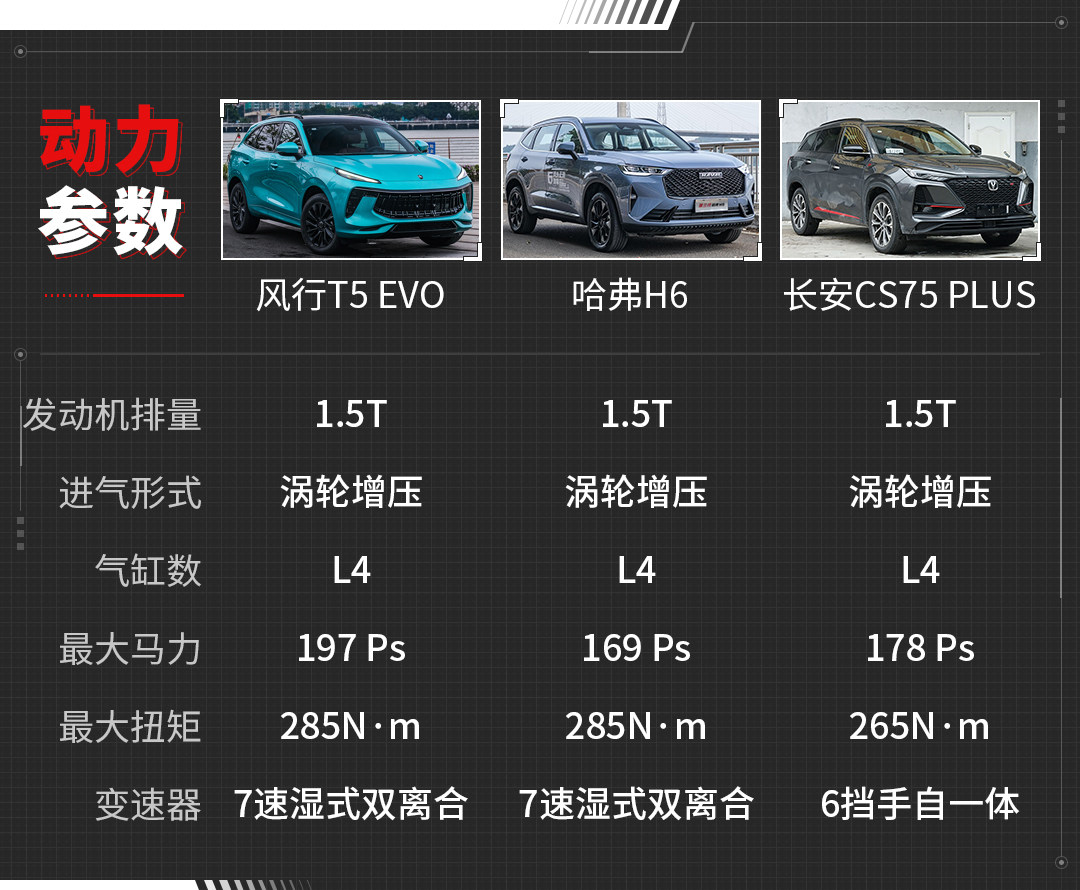 那么风行 T5 EVO会成为与自主SUV的新强者吗?能否与H6、CS75 PLUS比起来会如何呢?恰逢教授对三款车都做过实测,那么不妨以两位前辈为参考对比,进行全方位对比,看看风行T5 EVO的实力有多强呢?