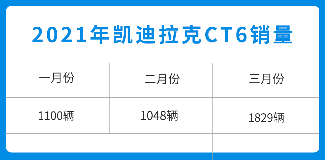在过去的一年里,凯迪拉克CT6累计交付21,689辆,远远不及同级别BBA的一个零头,而在2021年第一季度,它的表现也远远不如凯迪拉克其它车型,一月份售出1100辆,二月份售出1048辆,三月份相对好点,交付了1829辆;不过虽然凯迪拉克CT6表现不佳,但其它车型表现亮眼,助凯迪拉克3月总销量突破22,500辆,创历史同期销量纪录。