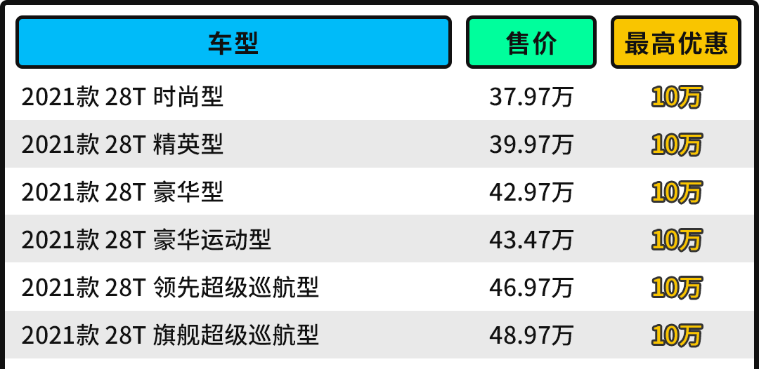 看到这里,很多消费者或许还是嗤之以鼻,提不起兴趣,凯迪拉克在华耕耘这么多年,肯定也是非常了解国人,所以就在售价方面给出十足的诚意,目前2021凯迪拉克CT6官方指导价区间为37.97-48.97万元,相比同级别BBA要便宜不少,更为关键的是全系均有10万元左右的优惠,部分地区甚至给出了11-12万元的优惠政策,这性价比简直无敌了,其它品牌的优惠力度在凯迪拉克面前都是小儿科。