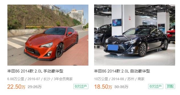 没有抢到新车的车迷便把目光转向了二手车市场,这也导致86/BRZ的二手车价格开始水涨船高,而且这两款车也是少有的手动挡比自动挡贵的车型,手动挡车型相较于自动挡,平均要贵个1-2万元,如果是二手车的话两个版本之间的价格差距会更大。
