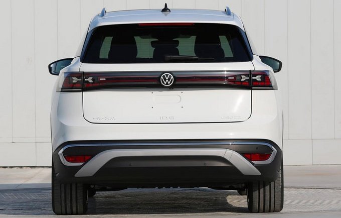 来到车尾,ID.6 CROZZ和ID.6 X的区别就更加明显了,ID.6 CROZZ的线条主要以直线为主,而ID.6 X则利用了曲线,还有车牌架的位置和后保险杠的设计也有区别,其余的包括贯穿式尾灯和其他的细节,都基本相似。