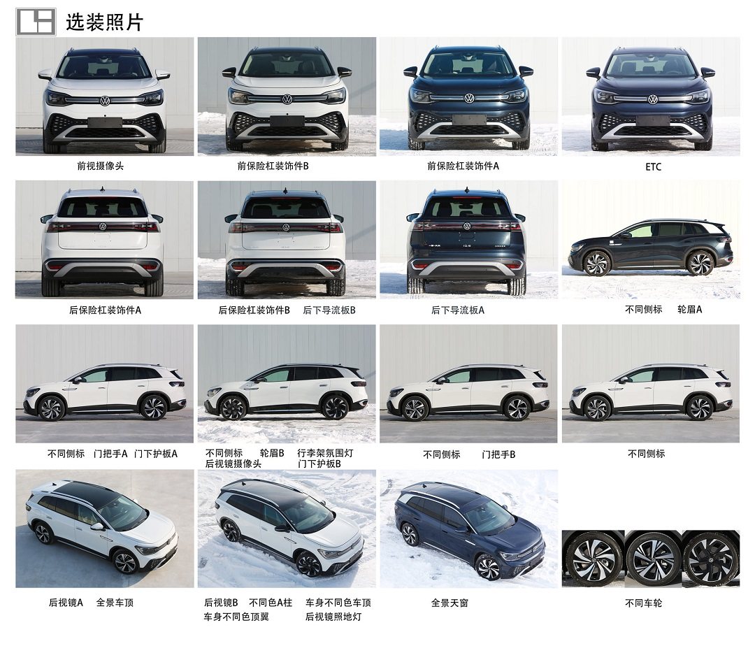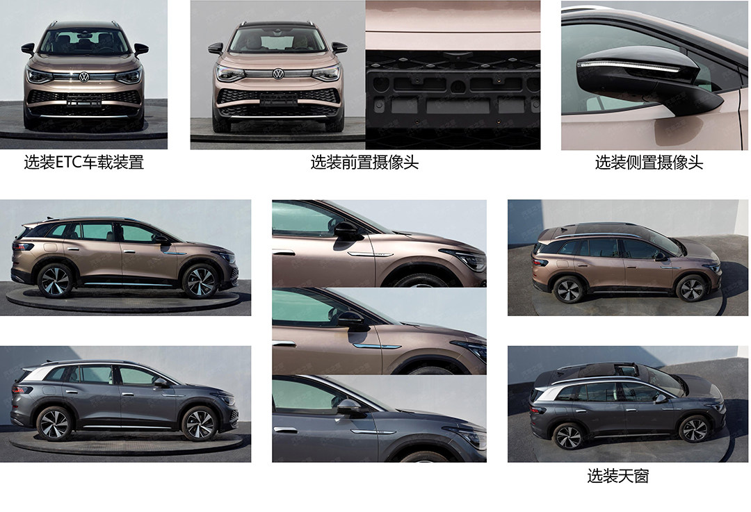 而ID.6 X则可选装ETC车载装置、前置摄像头、侧置摄像头,和天窗等。