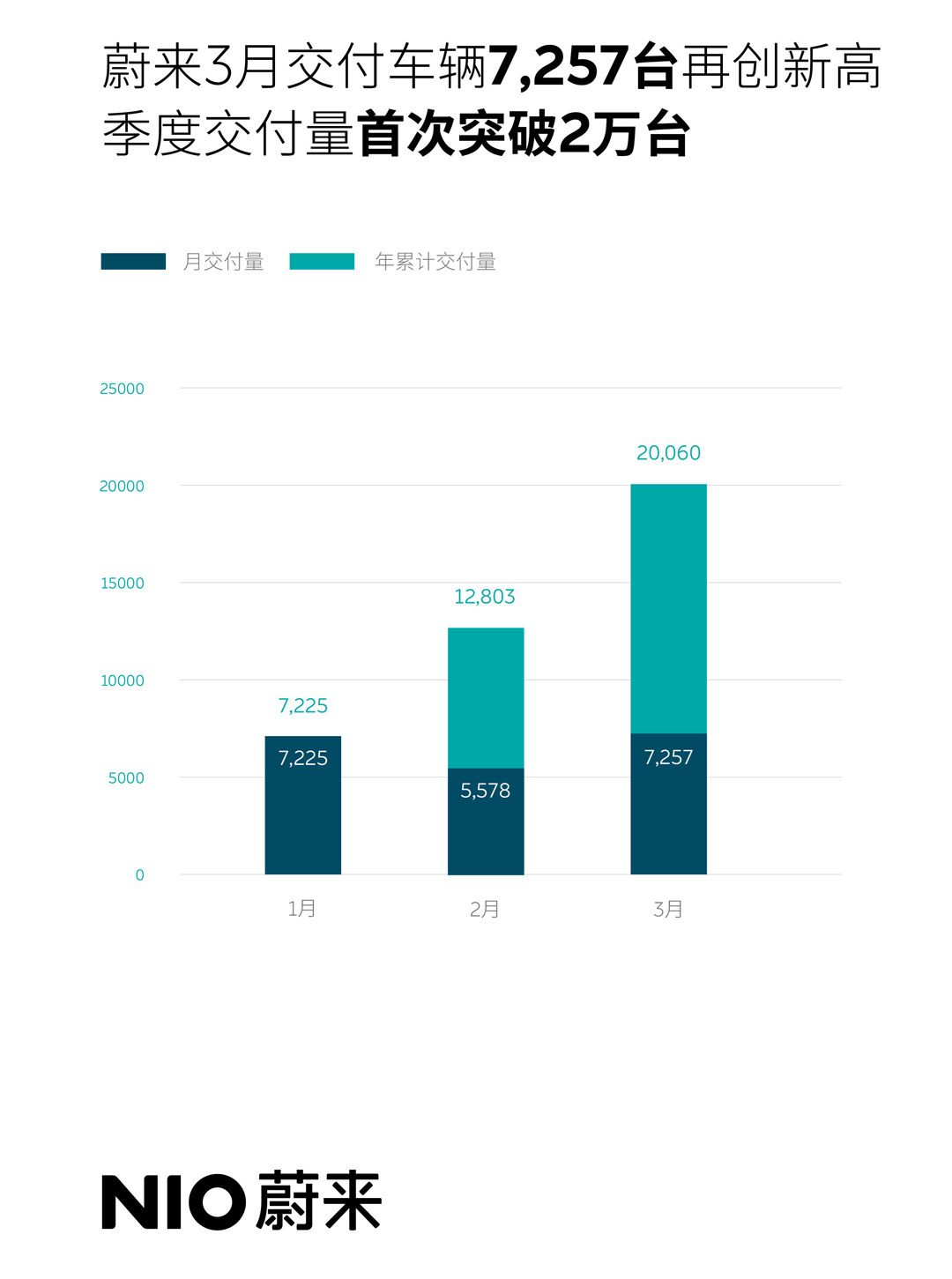 4月1日,蔚来汽车就迫不及待地发布了最新数据,其今年3月蔚来交付7257辆新车,创历史新高,同比增长373.4%。