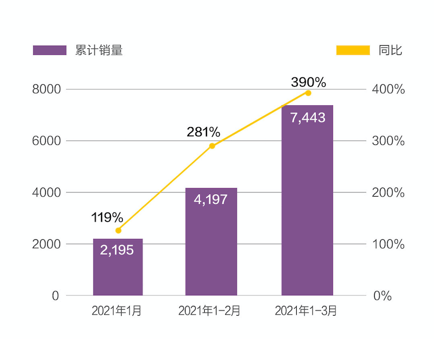 根据理想汽车公布的3月销量数据,理想ONE在3月交付4900辆,同比2020年3月增长238.6%,环比2021年2月增长113%。