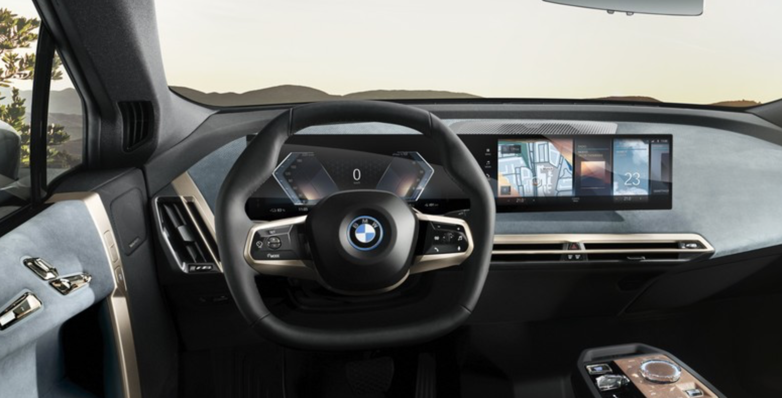 内饰采用了极简主义设计,很好的诠释了豪华与现代科技融合。六边形方向盘造型独特,汲取了方程式赛车的设计灵感;全新的曲面宽屏,巧妙地将12.3英寸全液晶仪表和14.9英寸中控屏融为一体,内部集成了最新的iDrive 8.0系统,通过语音和触控可实现车辆的诸多控制,相比现款的宝马车型,车内的物理按键减少了近50%。
