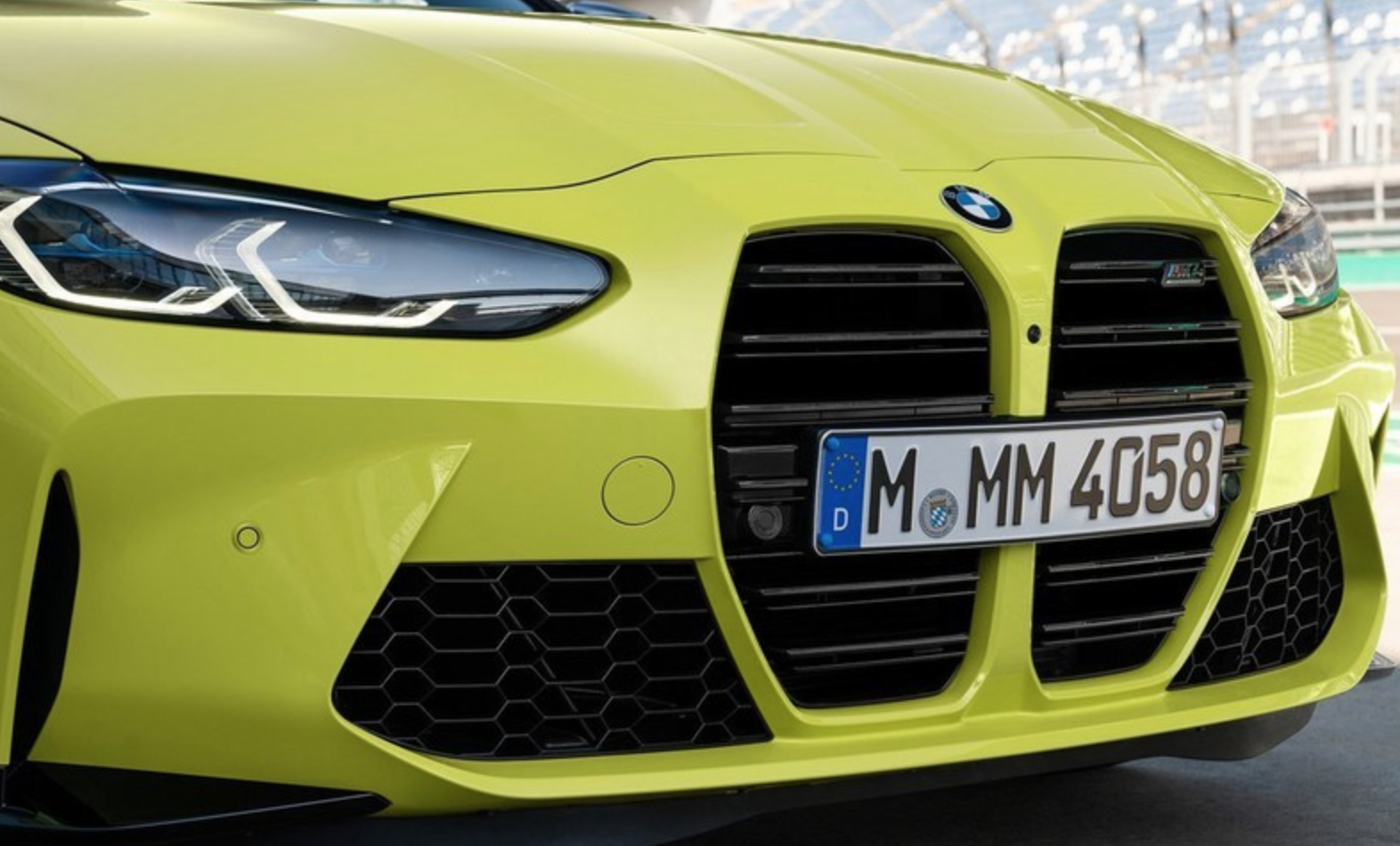 全新M3/M4采用了更加激进的设计语言,巨大的竖型双肾格栅和全新4系如出一辙,有人调侃它是大龅牙,但见到实车后,你又会被它那毫无遮掩的霸气外露所吸引。