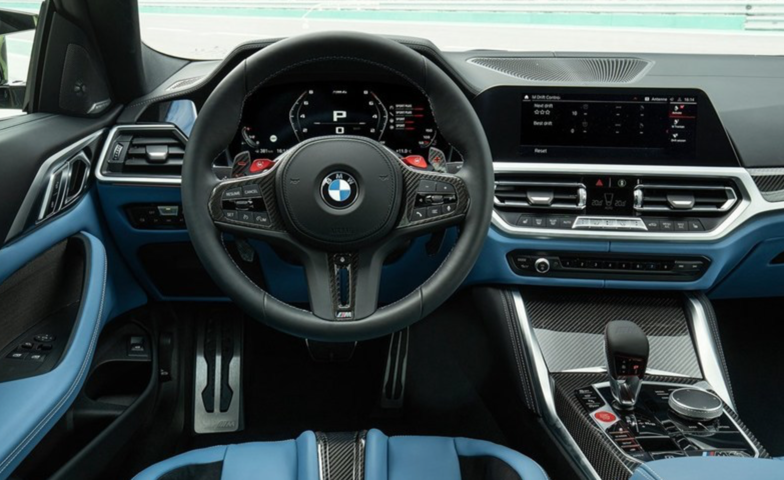 熟悉的运动座椅,随处可见的碳纤维饰板,以及突出的红色按键和专属的M标等,则表明了其特殊的身份。