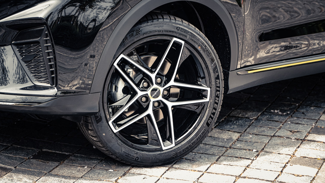 新款RX5 PLUS配备了新款的星芒轮毂,五辐式设计是运动车型的经典元素,RX5 PLUS使用上该风格,意味着荣威对该车在运动化的期待。与此同时,笔者发现该车使用米其林PS4的轮胎,要知道19英寸的PS4价格要高达1000元以上,体现出荣威对于消费者的诚意。