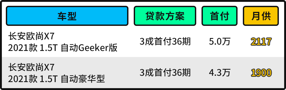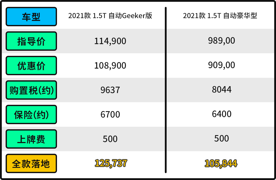 就算是新上市的欧尚X7 Geeker版性价比同样很高,官方推出了很多福利政策,例如Geeker尝鲜礼,交2000元订金可以抵8000元,就相对于优惠了6000元,优惠完裸车价为10.89万元,购置税9637元,商业保险+交强险6700元,上牌费500,全款落地在12.6万元左右。