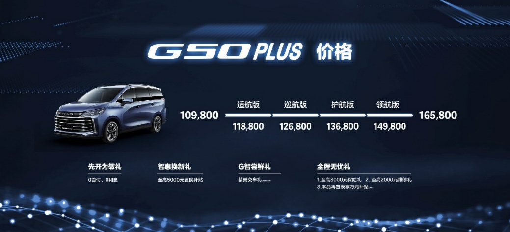 伴随着科技的发展与进步,家庭对智能化设备的需求正逐日剧增。4月10日,针对智能化大家庭出行场景打造的“带娃神器”——上汽大通MAXUS G50 PLUS正式上市,定制车型的售价范围是10.98万元到16.58万元,并提供四款推荐车型,售价分别为适航版11.88万元、巡航版12.68万元、护航版13.68万元与领航版 14.98万元。同时,上汽大通MAXUS还为购车用户提供四重上市豪礼,包括先开为敬礼(零首付、零利息)、智惠换新礼(至高5000元置换补贴)、全程无忧礼(至高3000元保险礼、至高2000元维修礼、本品再置换限时可享万元补贴)和G智尝鲜礼(前1000名交车客户更可享受精美交车礼),为消费者提供诚意满满的购车福利。