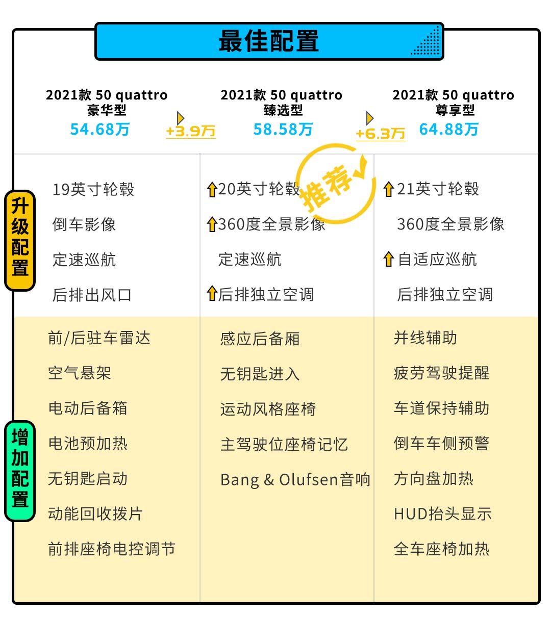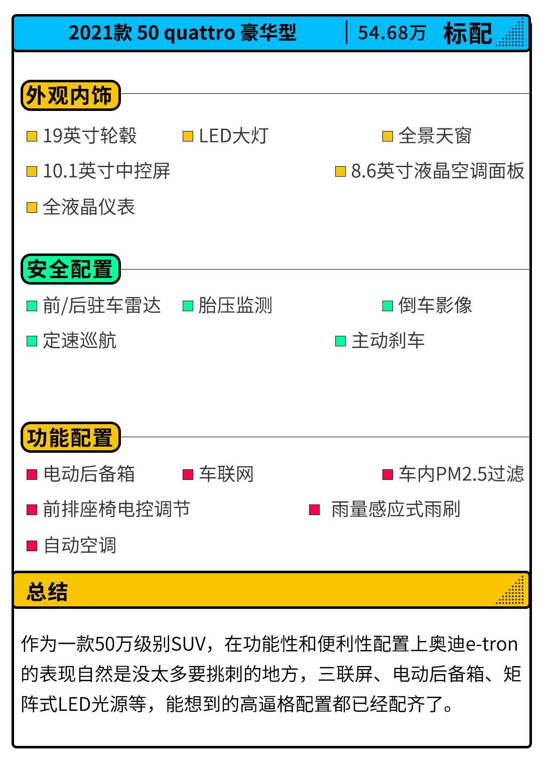 考虑到两车定位与适配人群的差异化,这里仅针对国产版奥迪e-tron做分析与版本推荐。