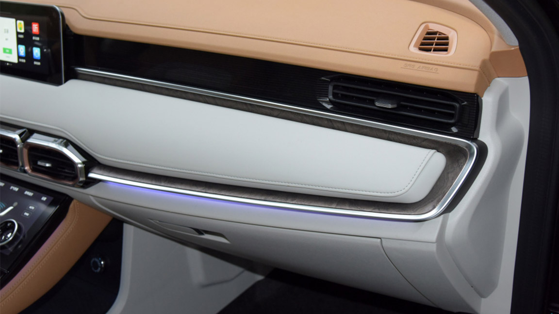 而用料方面同样不错,除了大量的皮质包覆和镀铬饰条,还带有多色可调氛围灯,总体来说新车内饰能营造出不错的豪华感。