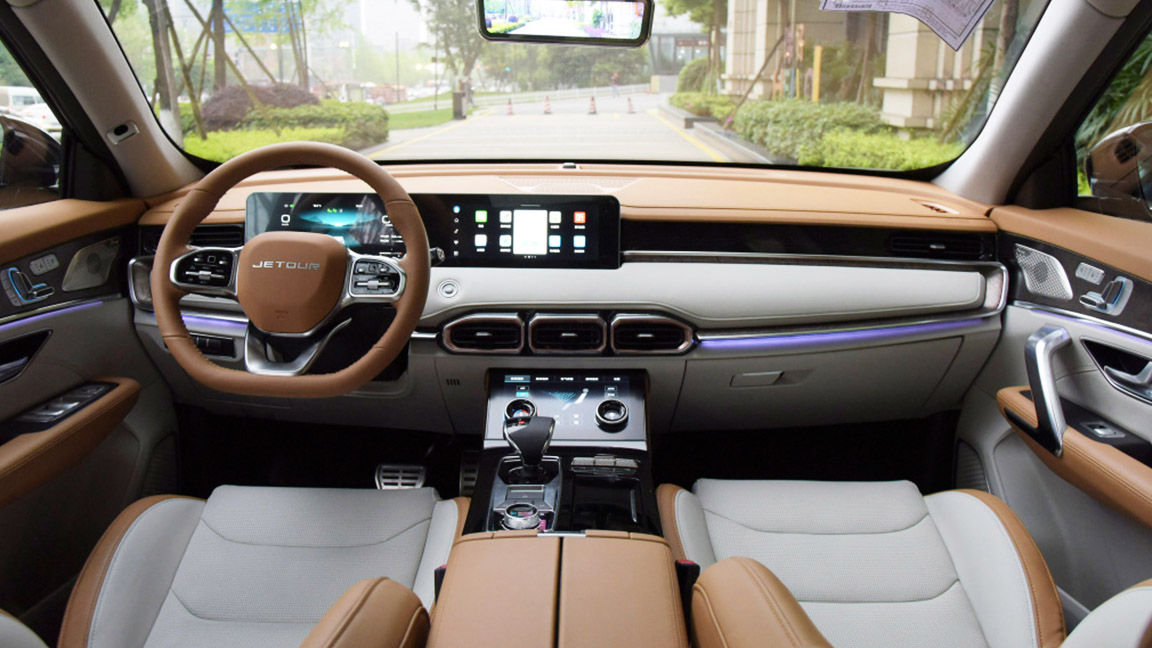 车尾部分,新车继续采用矩阵式光源贯穿尾灯设计,灯组中央的“JETOUR”英文车标与前脸相呼应,同时下方带有双边共四出的排气口。