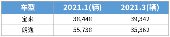 比如朗逸,今年1月份还有5.57万的销量,而到了3月份就只有3.54万辆,波动幅度近2万辆;而宝来1月份的销量3.84万辆,3月份的销量为3.93万辆,只有几百辆的波动幅度。