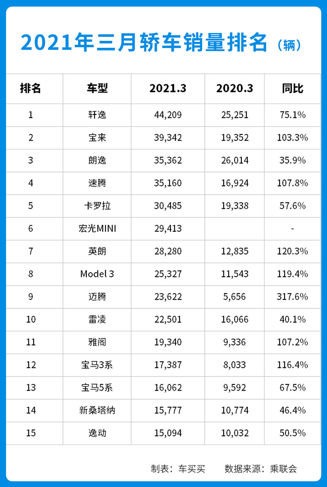 从TOP15榜来看,前三名的竞争较为激烈,上个月还排名第一的朗逸不仅被轩逸夺取了冠军宝座,而且还被自家兄弟宝来超越;迈腾同比增长317.6%,是榜单中涨幅最大的车型;帝豪掉出榜单,逸动成为唯一入榜的国产车。